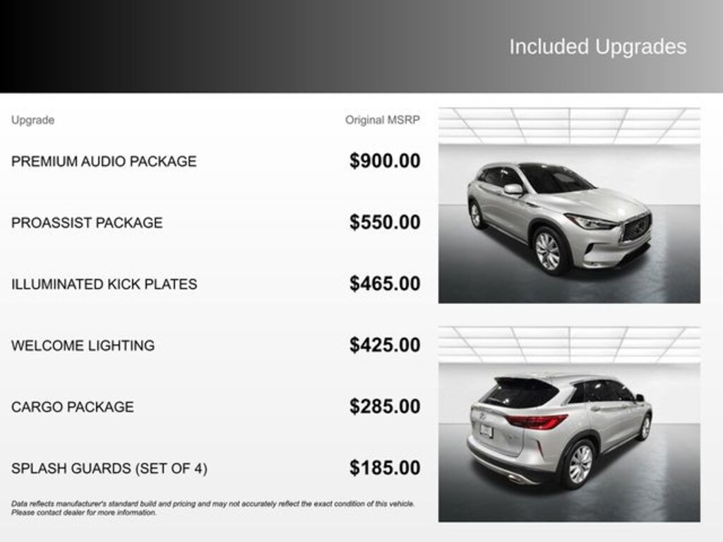 Very clean and very well priced! A turbocharger further enhances performance, while also preserving fuel economy. INFINITI prioritized handling and performance with features such as: front bucket seats, power windows, and leather upholstery. It features a continuously variable transmission, front-wheel drive, and a 2 liter 4 cylinder engine.
