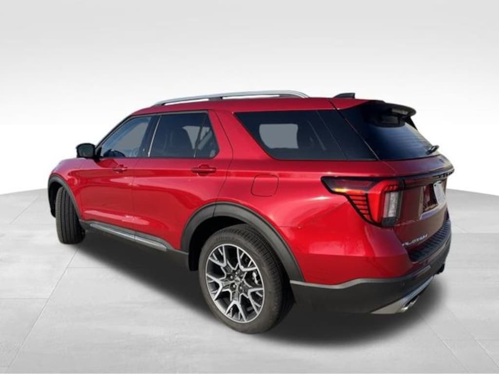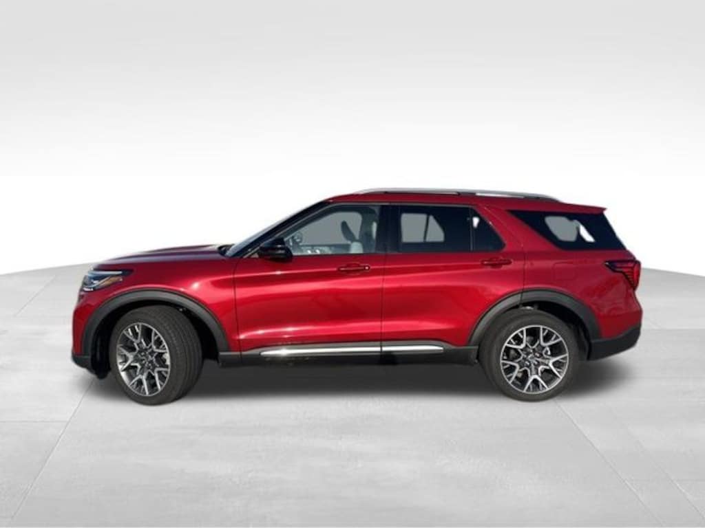 2025 Ford Explorer Platinum Red Metallic 14 Speakers, 3rd row seats: bench, 4-Wheel Disc Brakes, ABS brakes, ActiveX Trimmed Sport Captain's Chairs, Air Conditioning, Alloy wheels, AM/FM radio: SiriusXM with 360L, Apple CarPlay/Android Auto, Auto High-beam Headlights, Auto-dimming door mirrors, Auto-dimming Rear-View mirror, Automatic temperature control, Brake assist, Bumpers: body-color, Compass, Delay-off headlights, Driver door bin, Driver vanity mirror, Dual front impact airbags, Dual front side impact airbags, Electronic Stability Control, Emergency communication system: 911 Assist, Equipment Group 600A Standard Package, Exterior Parking Camera Rear, Ford BlueCruise Equipped (1-Year Plan) (DISC), Four wheel independent suspension, Front anti-roll bar, Front Bucket Seats, Front Center Armrest, Front dual zone A/C, Front fog lights, Front License Plate Bracket, Front reading lights, Fully automatic headlights, Garage door transmitter, Heated door mirrors, Heated front seats, Heated rear seats, Heated steering wheel, Illuminated entry, Internet access capable: FordPass Connect 5G, Knee airbag, Leather Seating Surfaces Sport Captain Chairs, Leather steering wheel, Low tire pressure warning, Lux Leather Package, Memory seat, Navigation System, Occupant sensing airbag, Outside temperature display, Overhead airbag, Overhead console, Panic alarm, Passenger door bin, Passenger vanity mirror, Platinum Badges on Front Row Seats, Power door mirrors, Power driver seat, Power Liftgate, Power moonroof, Power passenger seat, Power steering, Power windows, Quilting & Stitching on Door Panels, Quilting & Stitching on Seats, Radio data system, Radio: B&O Sound System by Bang & Olufsen w/HD, Rain sensing wipers, Rear air conditioning, Rear anti-roll bar, Rear reading lights, Rear window defroster, Rear window wiper, Remote keyless entry, SecuriCode Keyless Entry Keypad, Security system, Speed control, Speed-sensing steering, Speed-Sensitive Wipers, Split folding rear seat, Spoiler, Steering wheel mounted audio controls, Tachometer, Telescoping steering wheel, Tilt steering wheel, Traction control, Trip computer, Turn signal indicator mirrors, Ultimate Package, Variably intermittent wipers, Ventilated front seats, Wheels: 21" Dark Alloy-Painted Machined Aluminum.