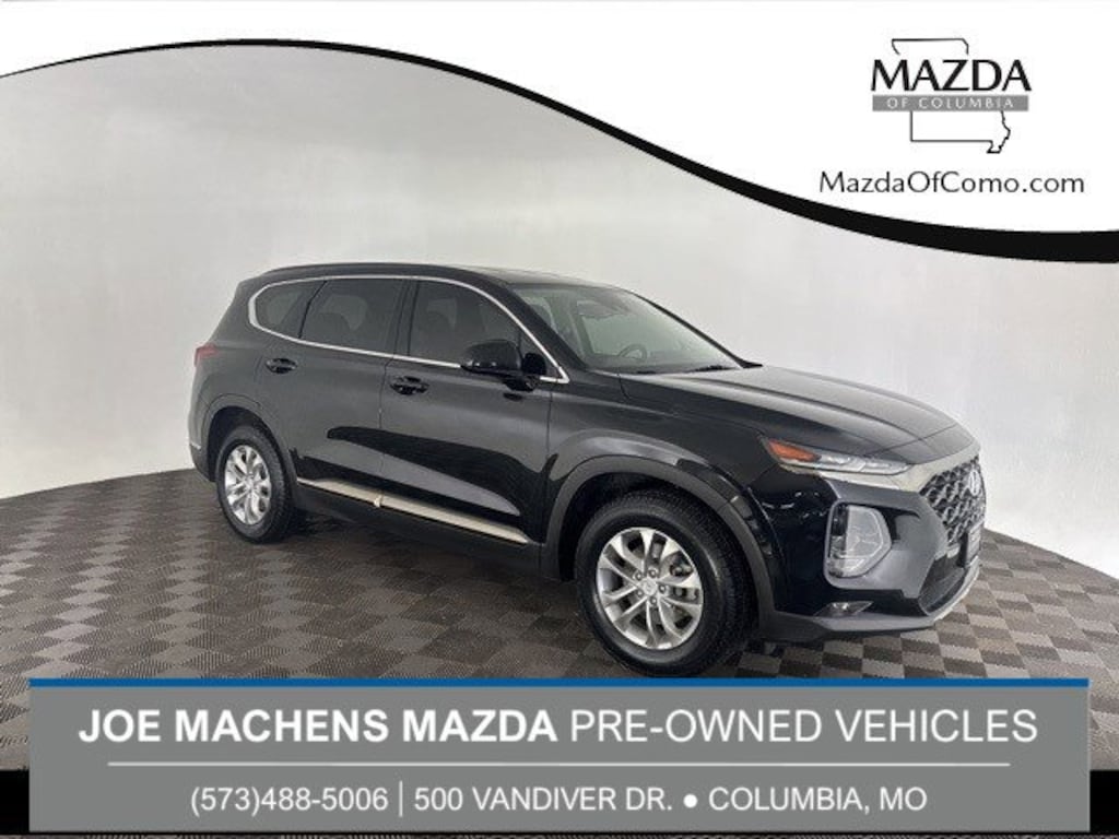 Twilight Black 2019 Hyundai Santa Fe SEL 2.4L I4 DGI DOHC 16V LEV3-ULEV70 185hp 8-Speed Automatic with SHIFTRONIC AWD AWD, Black/Black Cloth, 4-Wheel Disc Brakes, 6 Speakers, ABS brakes, Air Conditioning, Alloy wheels, AM/FM radio: SiriusXM, Apple CarPlay & Android Auto, Auto High-beam Headlights, Brake assist, Delay-off headlights, Electronic Stability Control, Exterior Parking Camera Rear, Four wheel independent suspension, Front Bucket Seats, Front Center Armrest, Front fog lights, Fully automatic headlights, Heated Front Bucket Seats, Heated front seats, Power driver seat, Power windows, Radio: AM/FM/MP3 Display Audio, Remote keyless entry, Split folding rear seat, Stain-Resistant Cloth Seating Surfaces, Steering wheel mounted audio controls.