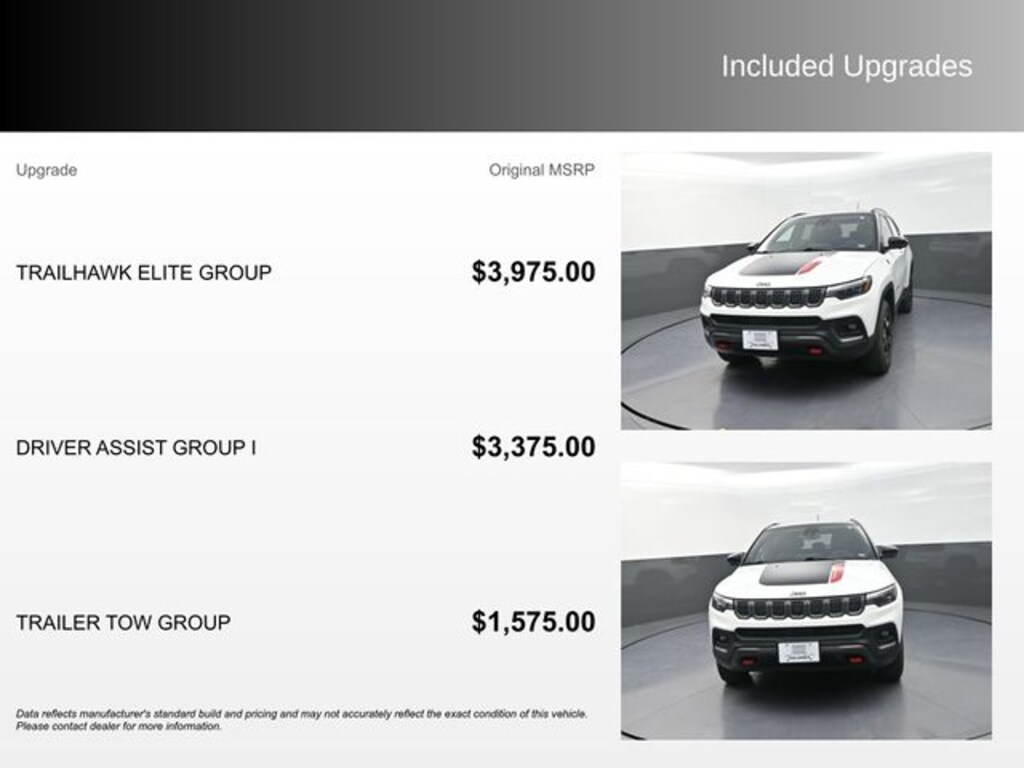 Powered by a 2.0L I4 DOHC engine and equipped with 4-wheel drive, the Compass Trailhawk delivers a refined and responsive driving experience. With 24 MPG in the city and 32 MPG on the highway, this SUV offers impressive efficiency to complement its capable performance.